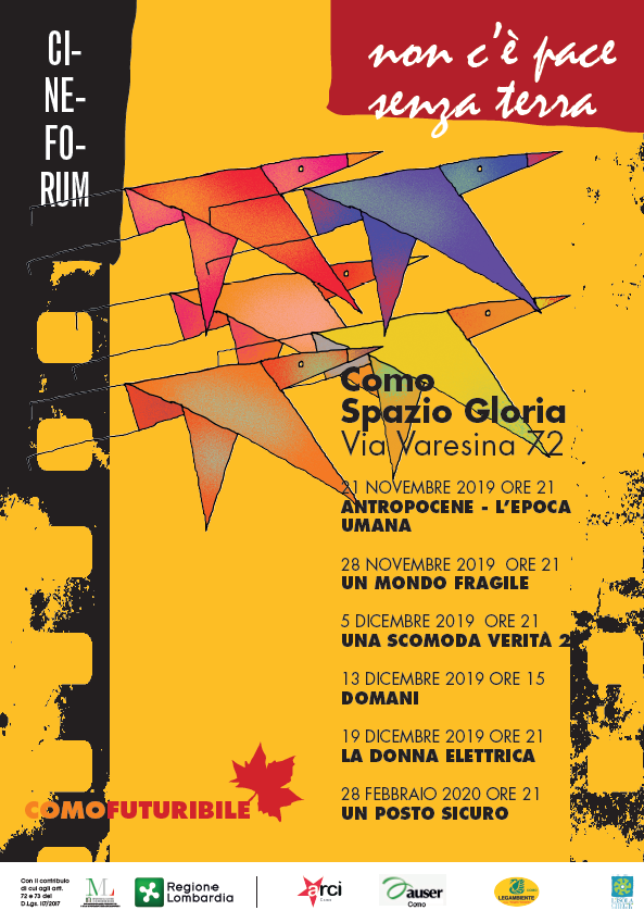 Si è aperto allo Spazio Gloria del circolo Arci Xanadù il 21 novembre sera con la proiezione di Antropocene, l’epoca umana, il cineforum Non c’è pace senza terra di Como futuribile. All’iniziativa hanno partecipato oltre 100 persone. Grande anche l’attenzione alla campagna Gloria for future per 10mila Aceri campestri in città e sostenere il Gloria bene comune. Massimo Patrignani ha illustrato in estrema sintesi l’impegno ambientalista di Progetto Como futuribile: «Non neutrale, non di bandiera. Non vogliamo accontentarci di qualche quintale in più di raccolta differenziata, di una spruzzatina di verde, di qualche metro di pista ciclabile in più. Progetto Como futuribile afferma con Chico Mendes “L’ambientalismo vero è quello che non si riduce a giardinaggio ma è quello che si prende carico anche dei problemi sociali”»
