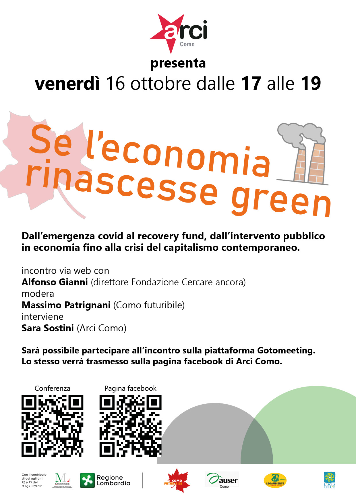 Alfonso Gianni è stato ospite della conferenza con dibattito tenutasi sul web lo scorso venerdì 16 ottobre. L’incontro, organizzato dall’Arci di Como sulla piattaforma Gotomeeting e trasmesso in diretta su facebook, ha permesso di riflettere sul rapporto tra una economia che deve necessariamente cambiare e un ambiente che non può più aspettare fantasiose riforme che contribuiscono ben poco a migliorare la situazione. Un momento di confronto che fa parte del progetto Como futuribile (Arci Como, Auser volontariato, L’isola che c’è e Legambiente, finanziato dalla Regione Lombardia e dal Ministero del Lavoro e delle Politiche sociali).