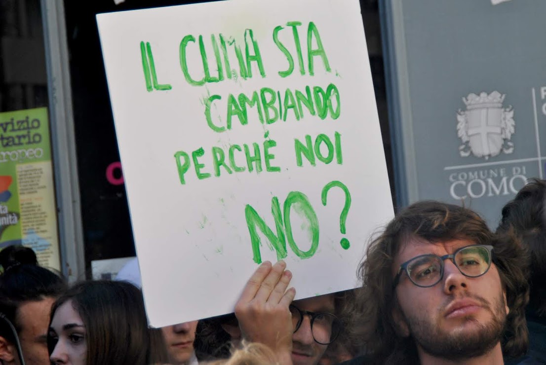 Dopo qualche domanda sulle collaborazioni del movimento e sull’utilità ad esempio del trasporto su rotaia, Aiani ha ceduto la parola a Mauro Rottoli. Il professore si è chiesto subito che effetti avrà il riscaldamento globale a livello locale. Gli è bastato un solo esempio: gli impianti sciistici in Val d’Intelvi, dove non si vede più una vera nevicata adeguata da anni. La neve sparata, ad esempio, è usata da molti anni anche in quota perché ormai il manto delle nevi perenni è praticamente agli sgoccioli. Pensiamo solo al danno che farebbe lo scioglimento completo dei ghiacciai: verrebbe a mancare l’acqua, anche in provincia di Como. È vero, abbiamo il Lago, che però è alle prese con siccità e inquinamento. Altro fenomeno che tocchiamo con mano sono le frane, dovute a piogge brevi e molto intense. Sono tutti fenomeni che sembrano limitati, ma se guardiamo la moltiplicità annuale vediamo che essi si sono intensificati, così come i giorni superiori a 35 gradi in estate. Ma non è solo l’estate: alcuni alberi sono pronti a fiorire in inverno, e tutte le produzioni agrarie che vivono se esiste un clima normale, di fronte a questi fenomeni rischiano la distruzione. Basti pensare al fatto che una volta, sul Lago, gli ulivi si coltivavano quasi esclusivamente alla Zoca de l’Oli: adesso si possono coltivare persino in Spina Verde. Qualcosa è cambiato, ma quel qualcosa avverrà sempre più spesso. La Terra per sua natura cerca di arginare alcuni fenomeni, soprattutto con l’atmosfera: c’è il rischio in cui si superi un limite e si venga travolti dagli effetti del cambiamento climatico, anche localmente.